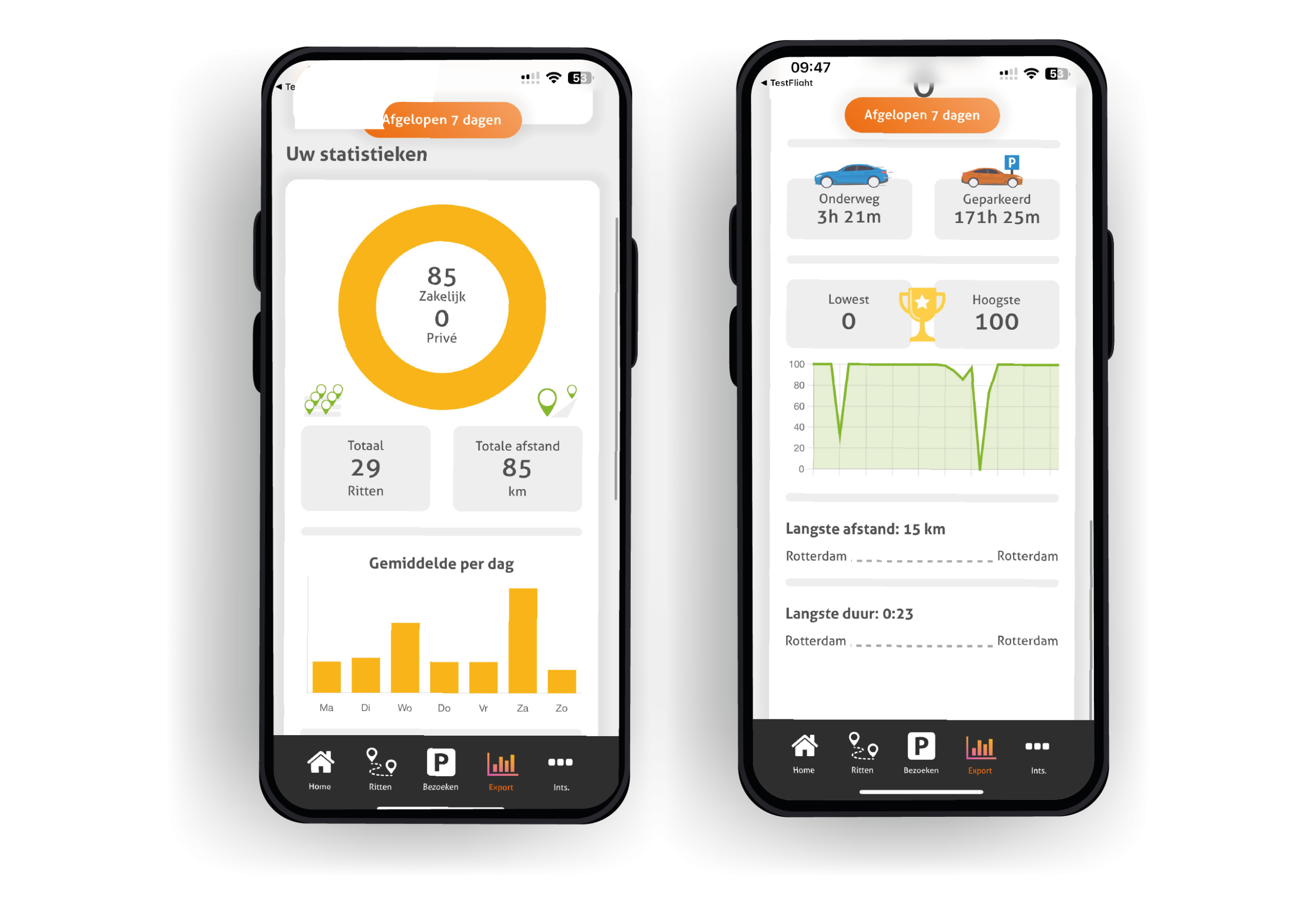 ✔️ Privé- en zakelijke ritten apart zichtbaar